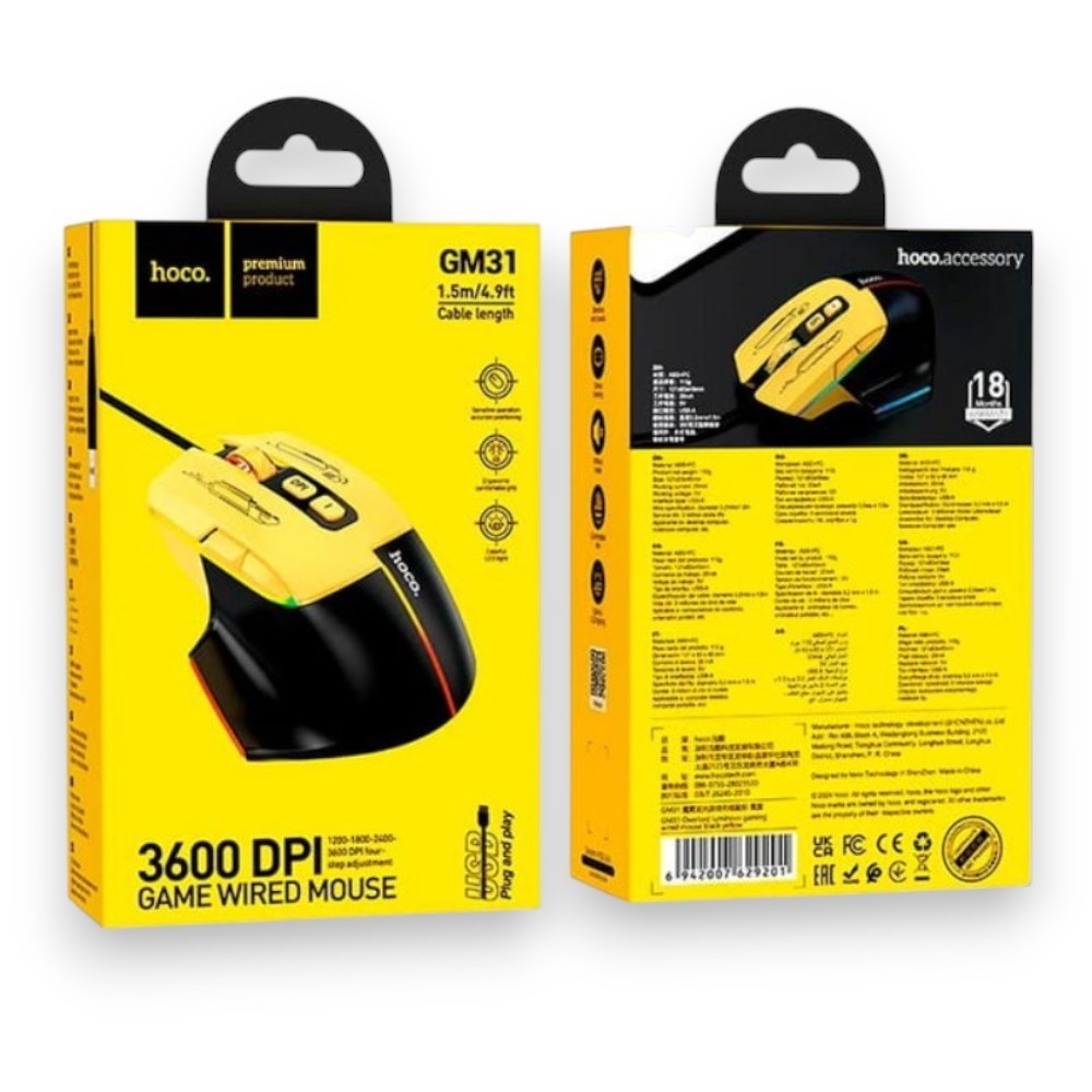 Мишки комп'ютерні | Купить Мишка дротова Hoco GM31 Black/yellow для по цене 235 грн - доставка по Украине