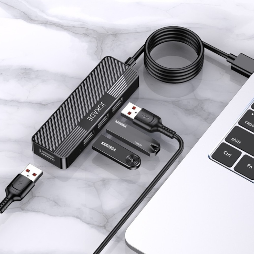 Перехідники, AUX кабелі, подовжувачі, хаби | Купить USB HUB Jokade JC009-H 4in1 converter USB2.0*4 1.2m Black для по цене 234 грн - доставка по Украине