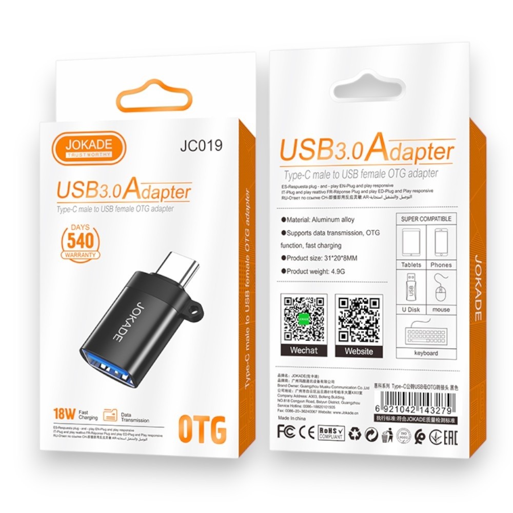 Перехідники, AUX кабелі, подовжувачі, хаби | Купить OTG Jokade converter JC019 Type-C to USB Black для по цене 66 грн - доставка по Украине