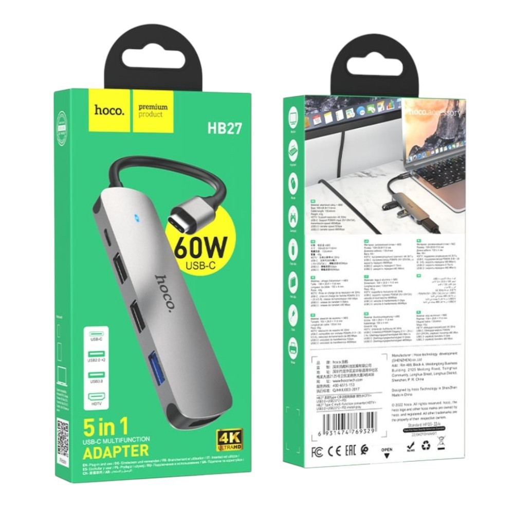 USB Hub Hoco HB27 Type-C multi-function converter (HDTV+USB3.0+USB2.0x2+PD) Grey - Photo 1 USB Hub Hoco HB27 Type-C multi-function converter (HDTV+USB3.0+USB2.0x2+PD) Grey - Photo 2 USB Hub Hoco HB27 Type-C multi-function converter (HDTV+USB3.0+USB2.0x2+PD) Grey - Photo 3