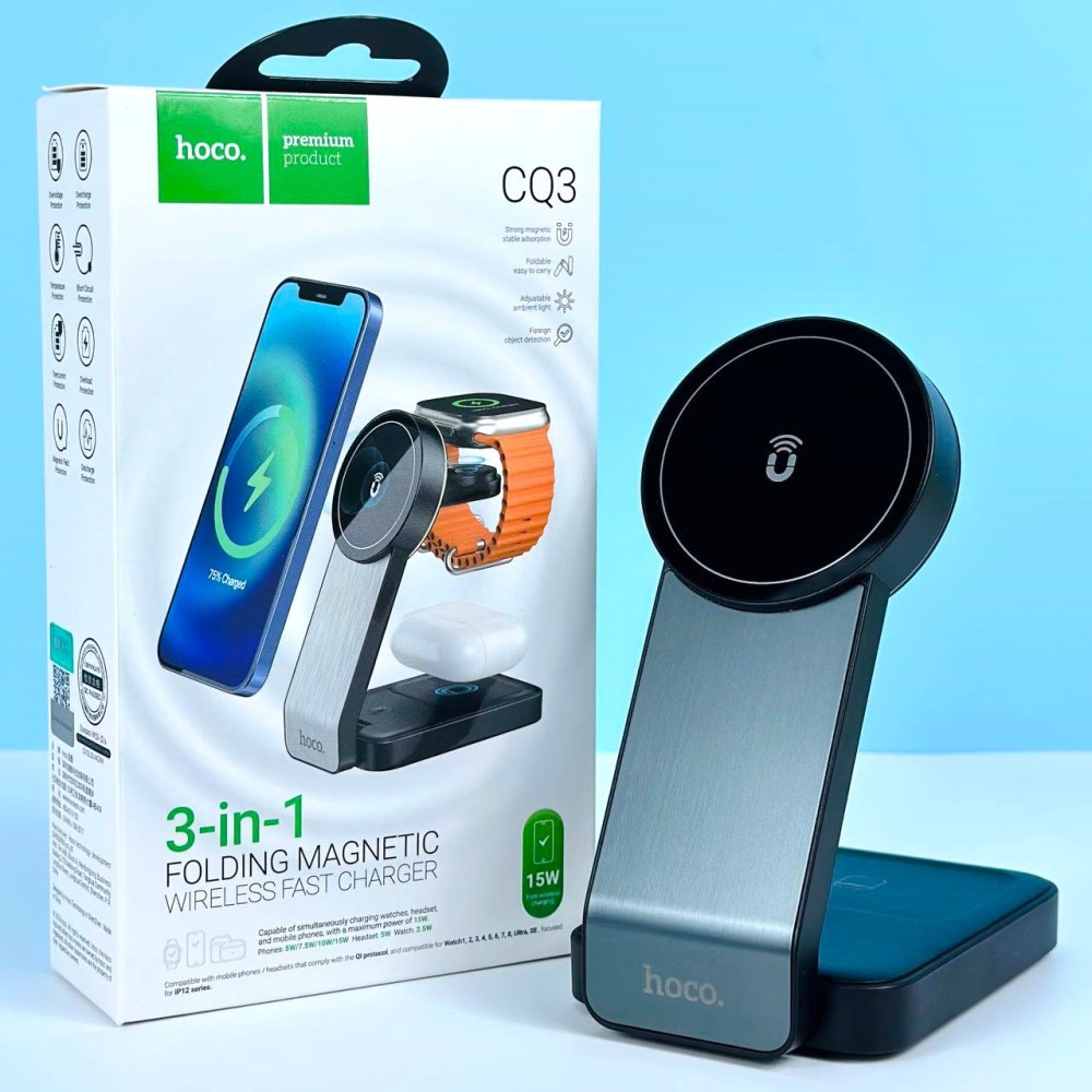 БЗП Hoco CQ3 Motorcycle folding 3-in-1 magnetic wireless fast charger  White - Photo 1 БЗП Hoco CQ3 Motorcycle folding 3-in-1 magnetic wireless fast charger  White - Photo 2