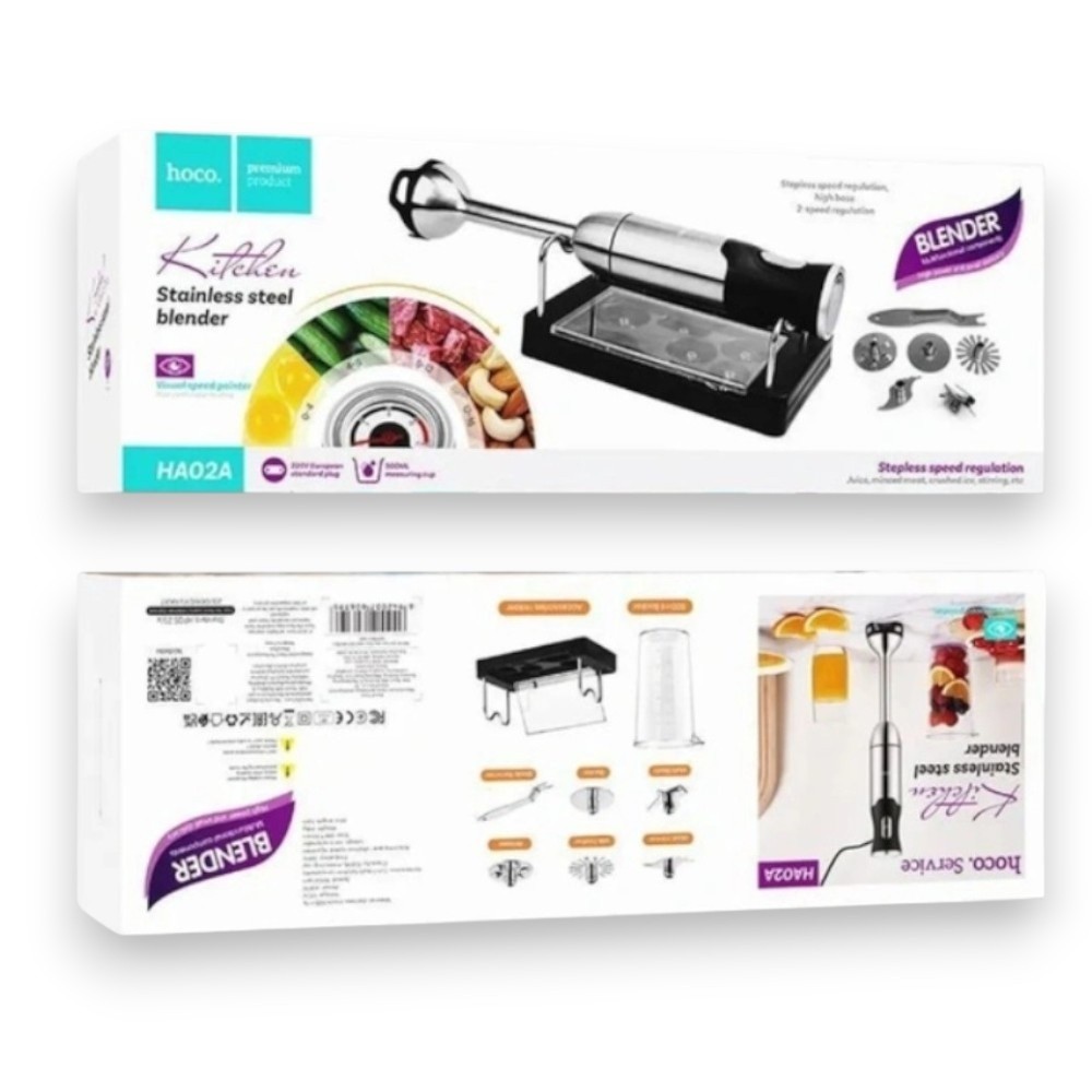 Hoco HA02A — універсальний кухонний помічник, який замінює кілька приладів одразу. Це 5-в-1 пристрій: блендер, м’ясорубка, віночок, збивальник, чопер. Він компактний, практичний та потужний.