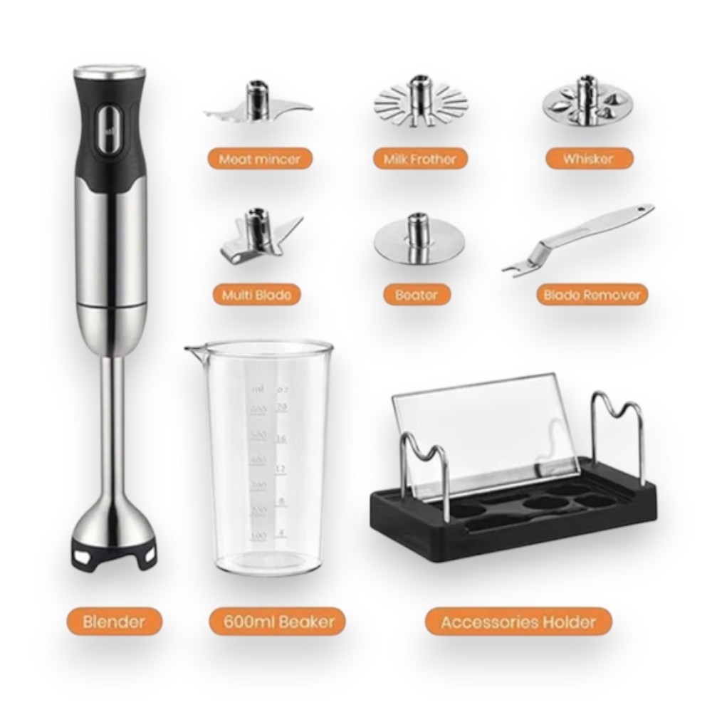 Комплектні насадки: блендер, м’ясорубка, віночок, чопер, збивальник