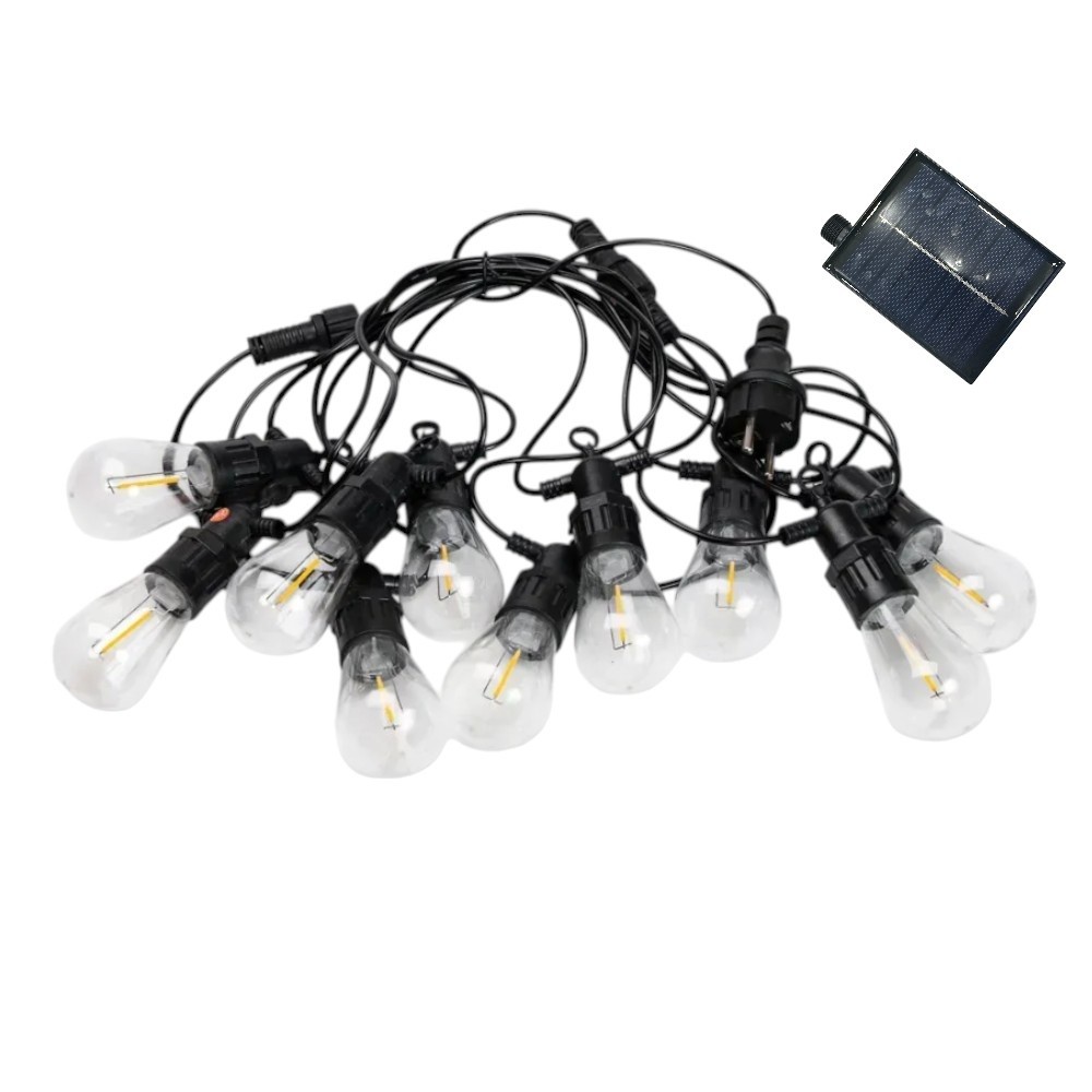 Завдяки сонячній панелі, довжині 10 метрів і 25 теплим LED-лампочкам вона заряджається вдень і світить вночі автоматично, забезпечуючи красиве та м’яке освітлення у дворі, на терасі чи в саду.