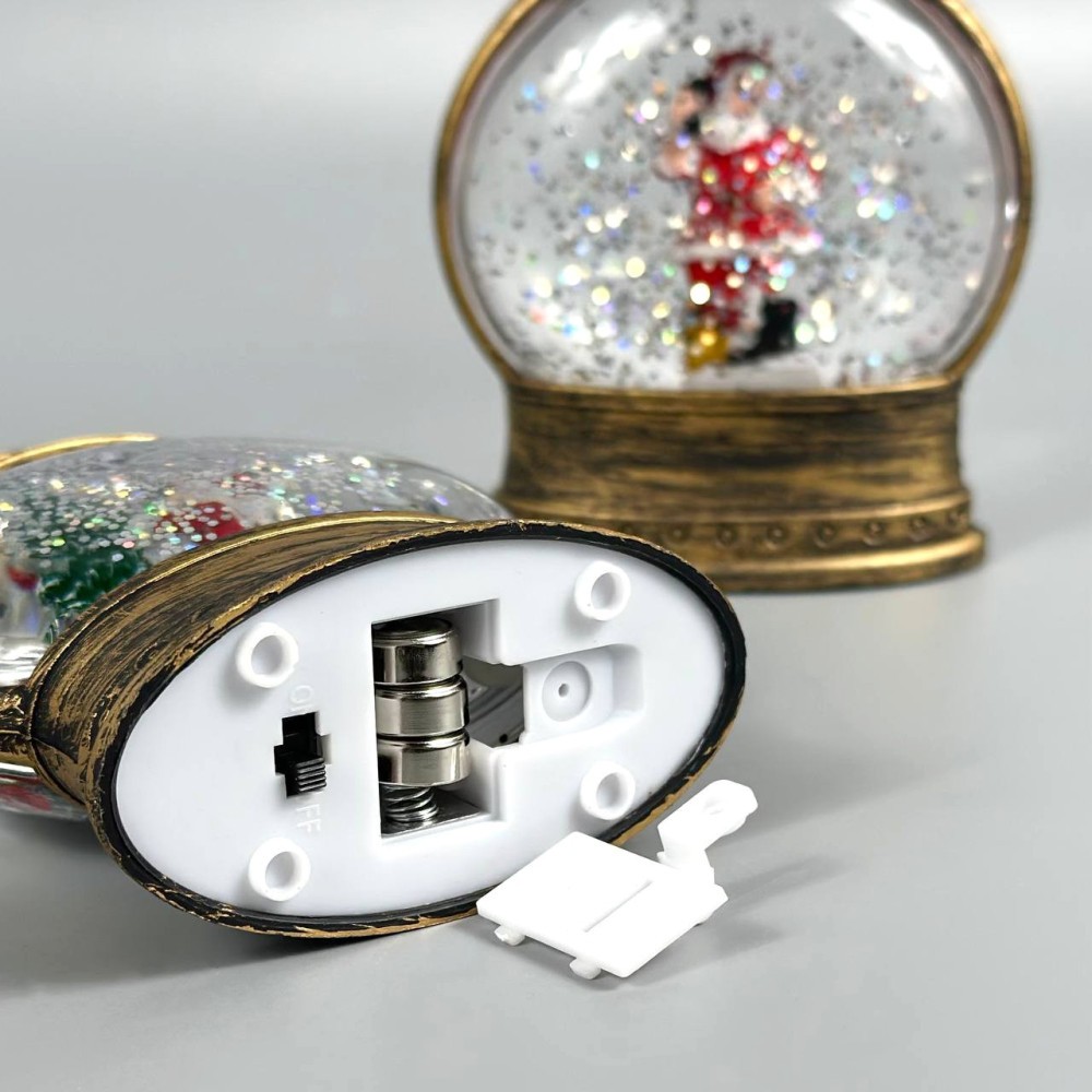 Фігурка всередині виглядає атмосферно: Санта ніби рухається у потоці блискіток.