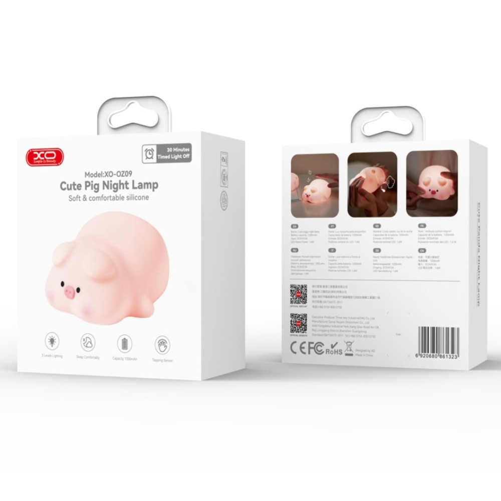 Нічник XO OZ09 Little Pink Pig Silicone 1200mAh Pink