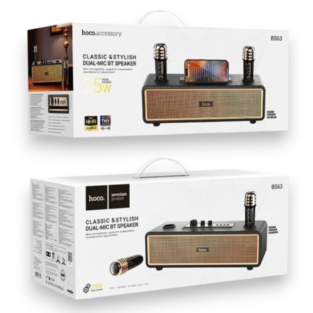 HOCO BS63 — це колонка, яка створена не просто для музики, а для емоцій. Вона поєднує приємний ретро-дизайн, сучасні технології, якісний звук і повноцінний караоке-функціонал. Це той варіант, який однаково гарно виглядає вдома, у кафе, на вечірці, у студії, в офісі або на природі.