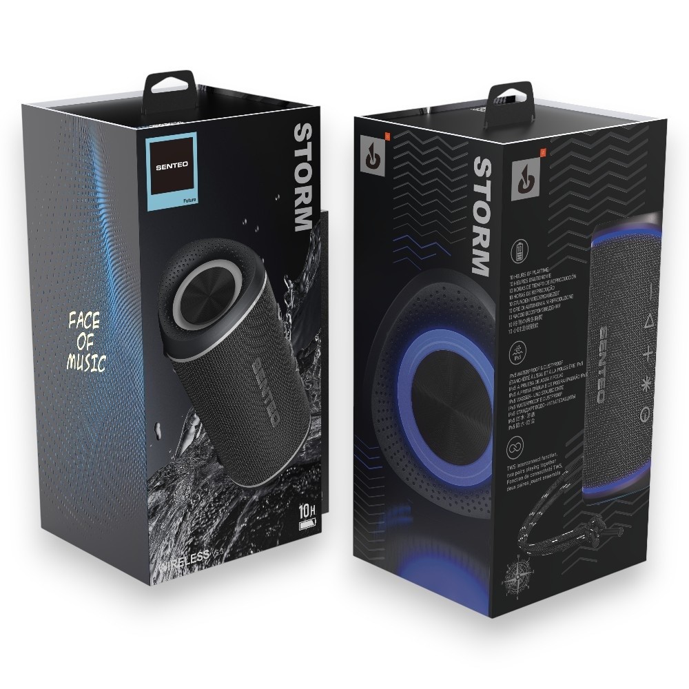 Колонка Senteo Storm — це універсальна бездротова Bluetooth колонка, створена для музики без обмежень. Вона однаково добре підходить для дому, прогулянок, подорожей і невеликих вечірок. Потужне стереозвучання, стабільне з’єднання та захист від вологи роблять цю модель практичним вибором для щоденного використання.