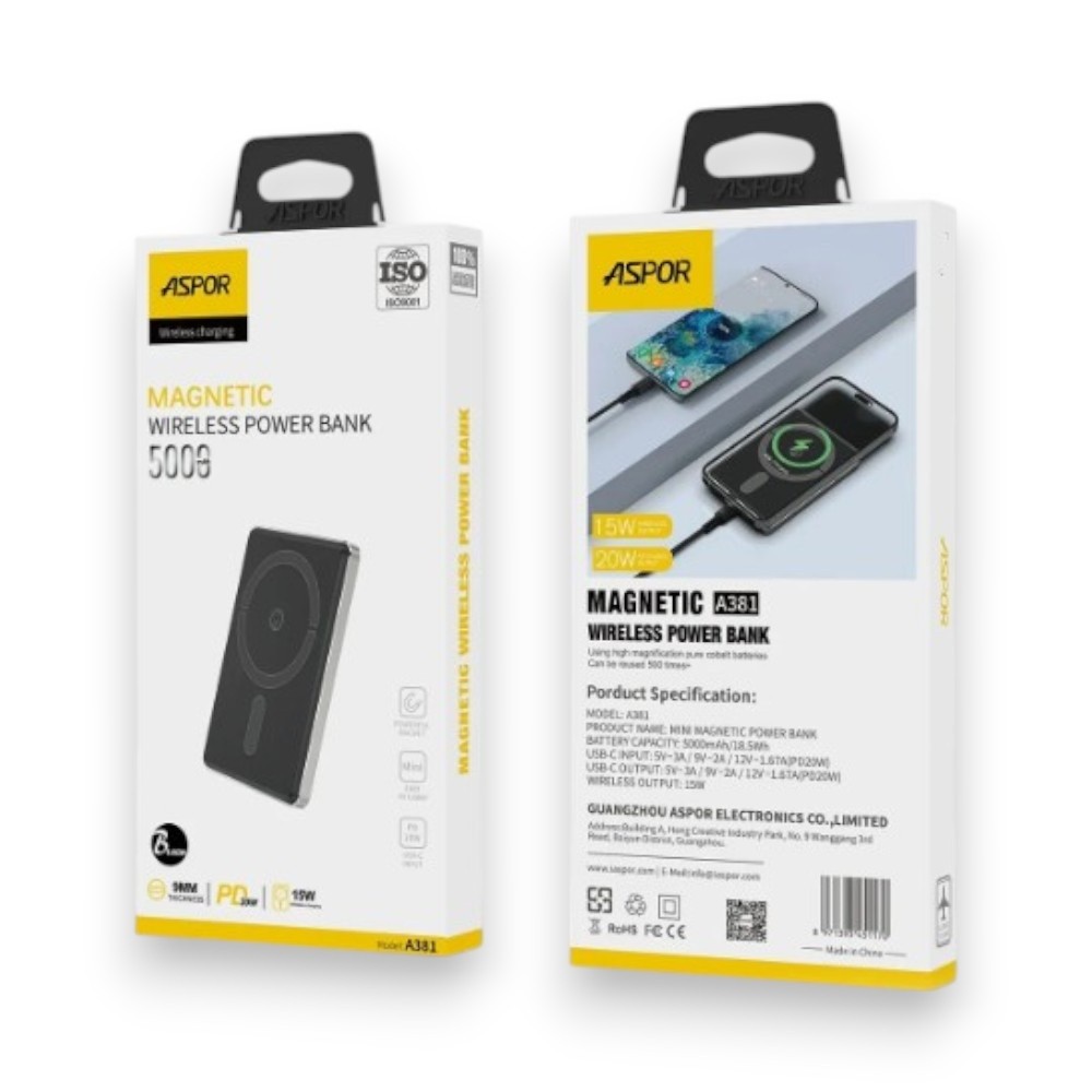 Aspor A381 Magnetic Wireless 5000mAh – коли зарядка стає простою, як рух рукою