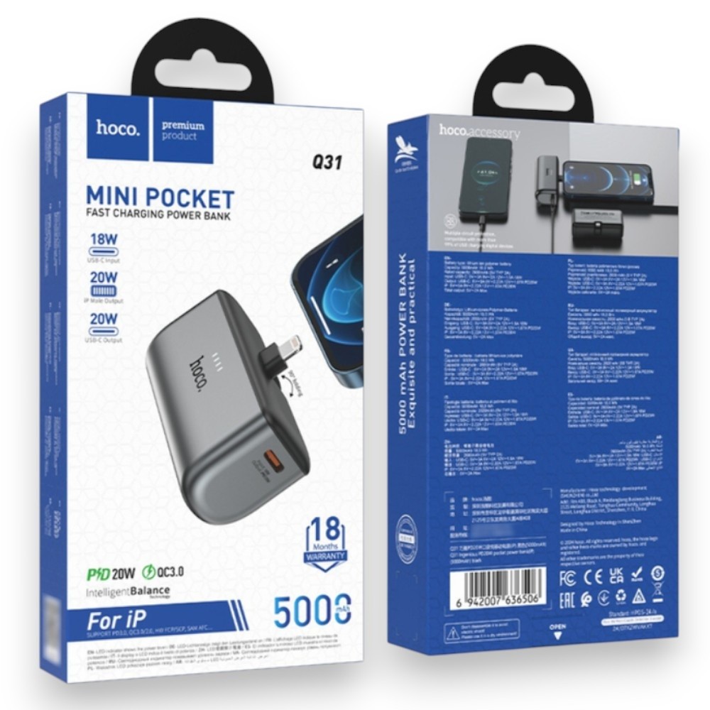 Power Bank Hoco Q31 5000 mAh — це стильний і надзвичайно зручний павербанк для тих, хто користується iPhone та хоче мати заряд завжди під рукою. Він легкий, надійний і не потребує жодних додаткових кабелів.