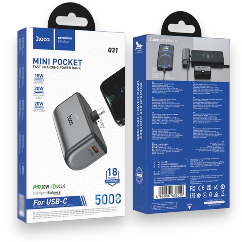 Power Bank Hoco Q31 PD20W with cable Type-C 5000 mAh Black - Фото 1 Power Bank Hoco Q31 PD20W with cable Type-C 5000 mAh Black - Фото 2 Power Bank Hoco Q31 PD20W with cable Type-C 5000 mAh Black - Фото 3