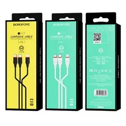 USB кабель Borofone BX17 3in1 Lightning/Micro/Type-C - це універсальний кабель, який підходить для заряджання та передачі даних на різних пристроях. Цей кабель має 3 типи роз'ємів: Lightning, Micro та Type-C, що забезпечує його сумісність з більшістю пристроїв.