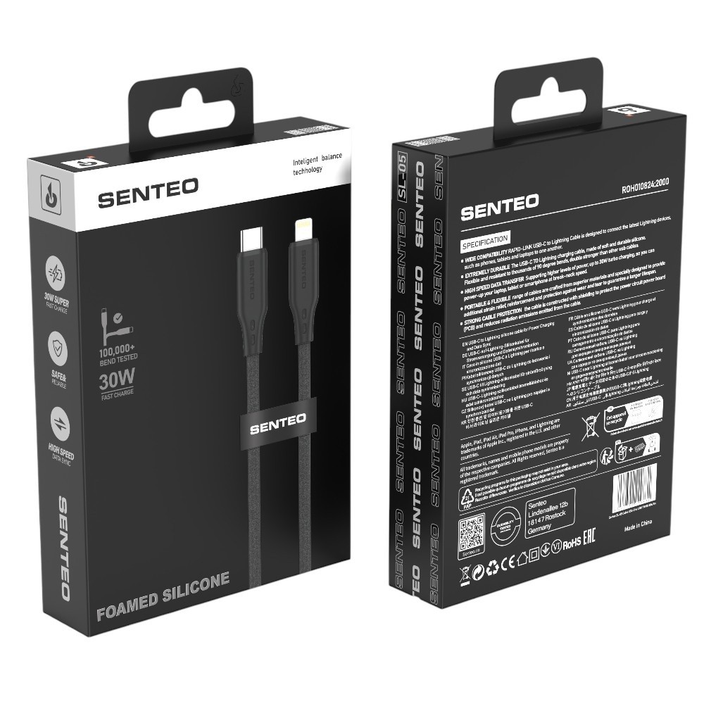 Senteo SL-05 — це універсальний кабель Type-C to Type-C з підтримкою Power Delivery до 60W, створений для швидкої зарядки сучасних смартфонів, планшетів і ноутбуків. Модель виконана з Foamed Silicone, що забезпечує комфорт у використанні та довгий термін служби.