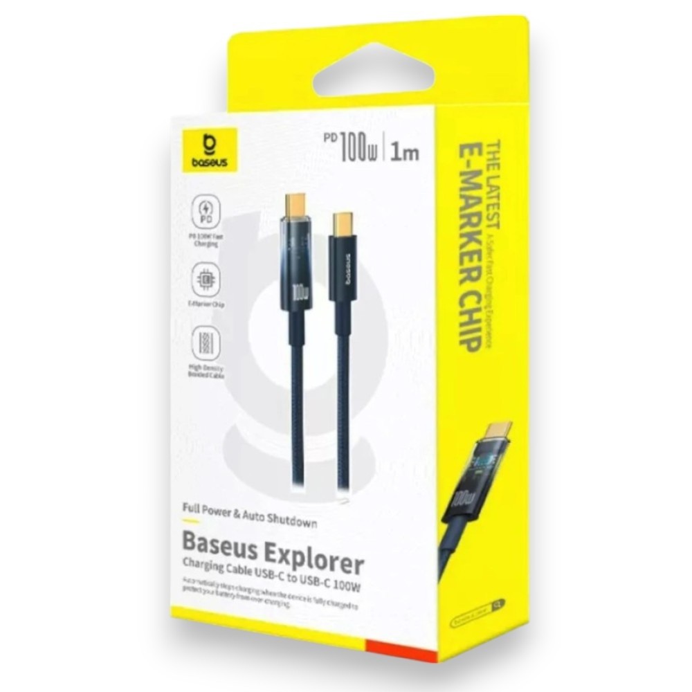 Кабелі USB | Придбати USB кабель Baseus Explorer Charging Cable USB-C to USB-C 100W with Auto Shutdown 1m Deepsea Blue для по ціні 391 грн - доставка по Україні