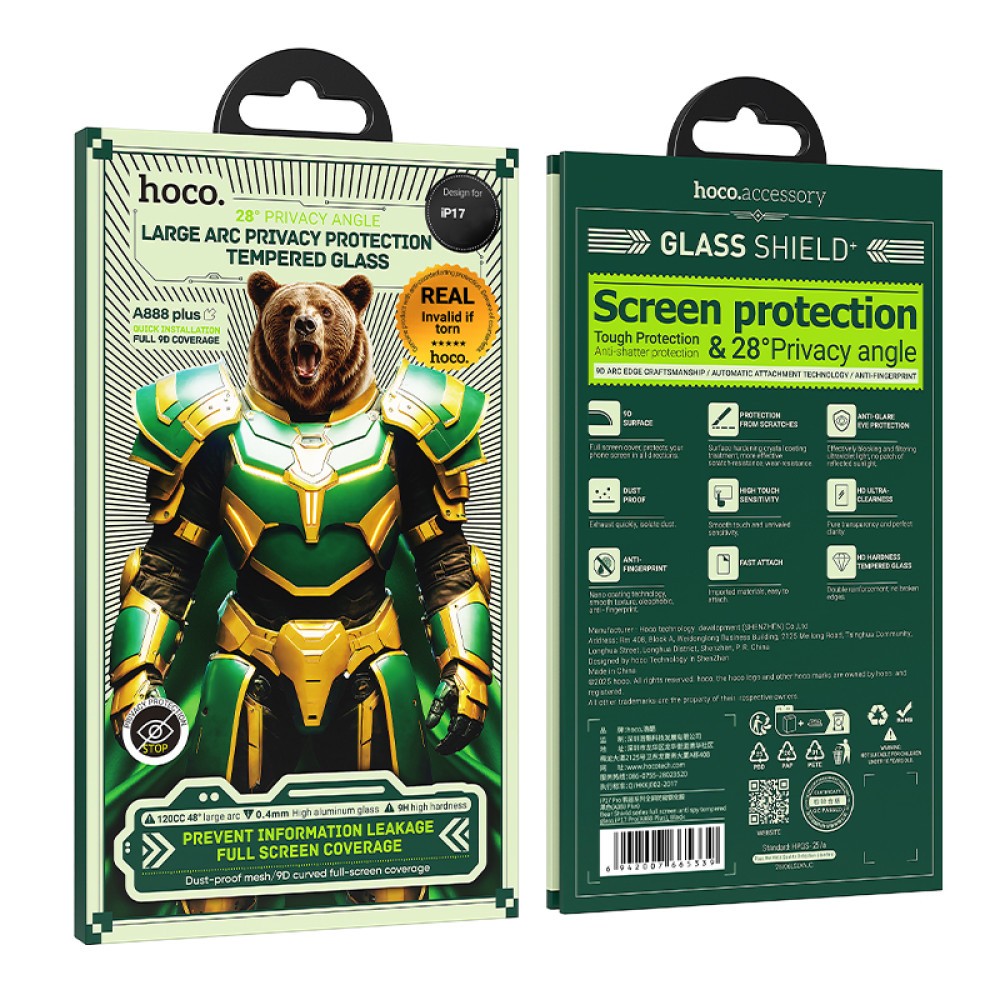 Захисне скло Hoco Bear Shield series full screen anti spy glass (A888 Plus) для iPhone 17 Pro Max Black - Фото 1