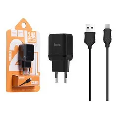 Мережевий зарядний пристрій USB Hoco C22A 2,4A + Micro cable Black - Фото 1