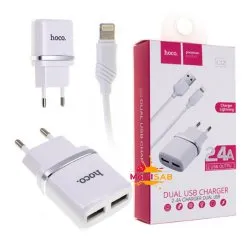 Мережевий зарядний пристрій USB Hoco С12 Dual USB 2,4A + Lightning cable