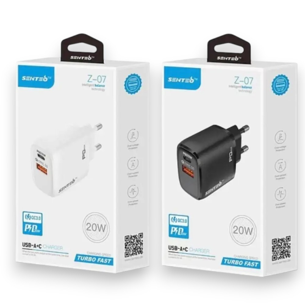 МЗП Senteo Z-07 USB+USB-C 3A PD QC3.0 20W 2Port Black